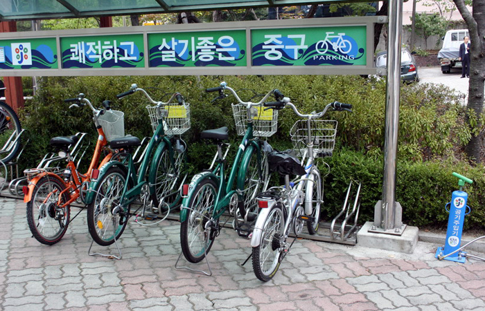 특별한 스테이션과 주차 공간이 있으며, 타이어 공기를 채울 수도 있다. 자전거 타기는 한국 여성들 사이에서 매우 인기 있어서 택시 대신 기꺼이 자전거를 탈 정도다. 가장 아름답고 패셔너블한 코스로는 강을 따라 잘 정비된 길이 꼽힌다. 자전거 도로에서는 아름다운 경치를 즐길 수 있어 매일 출근길에 자전거를 타는 것이 충분히 가치 있다.