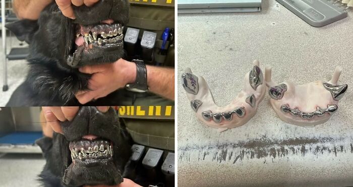 Deke라는 이름의 이 K-9 부대견은 근무 수명을 연장하기 위해 티타늄 치관을 부착받았다. 이 작업은 마약 단속과 체포 등 전문 임무를 수행하면서 자연 치아가 마모된 6세 된 저먼 셰퍼드에게 필요했다.
