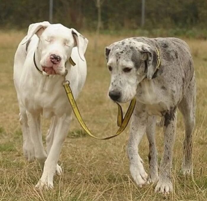 Lily라는 시각장애견 Great Dane은 안내견 Madison과 함께 있다. 릴리는 두 눈을 모두 제거해야 하는 병으로 시력을 잃었고, 또 다른 그레이트 데인인 매디슨은 그녀의 충실한 안내자이자 가장 친한 친구가 되어 시각장애에도 불구하고 세상을 탐험하는 데 도움을 주고 있다.