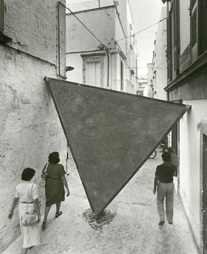 83.Mauro Staccioli’s ‘Martina Franca’ Italy ’79 Places A Large Concrete Triangle In The Street To Interrupt Daily Movement