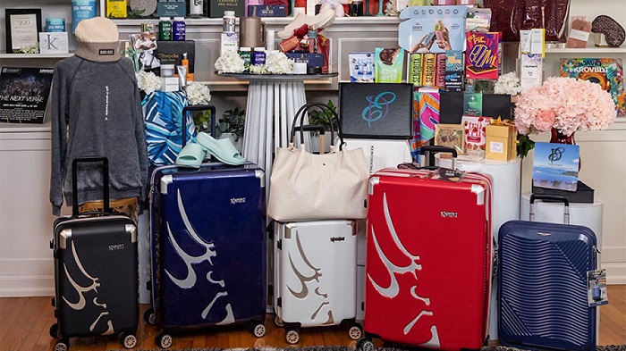 후보자들은 고급 간식과 차 세트에서부터 럭셔리 스킨케어 세트와 기술 액세서리에 이르기까지 선물로 가득 찬 디자이너 아시아 러기지 캐리어를