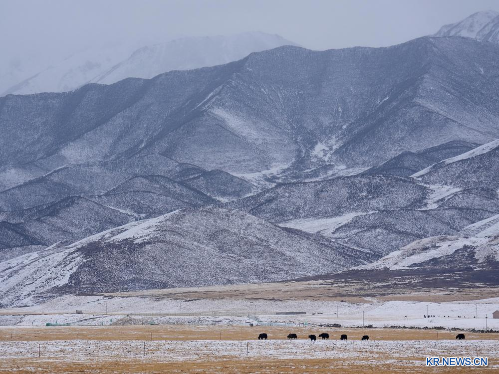 4.칭하이(青海)성 하이베이(海北)짱(藏)족자치주 치롄(祁連)현에선 강설로 인해 고원이 눈으로 뒤덮이면서 장관을 이뤘다.