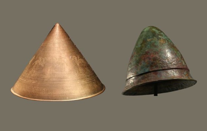 원뿔형 헬멧이 꽤 인기를 끌었다. 예를 들어, 기원전 8세기 경에 만들어진 청동 케겔헬멧은 얼굴을 보호할 수 없었다. 그보다 조금 늦게 고대 그리스에서는 Pylos 헬멧이 등장했는데, 이것은 높은 차양이 있는 원뿔형 노동자 모자인 pileus에서 영감을 받았다.